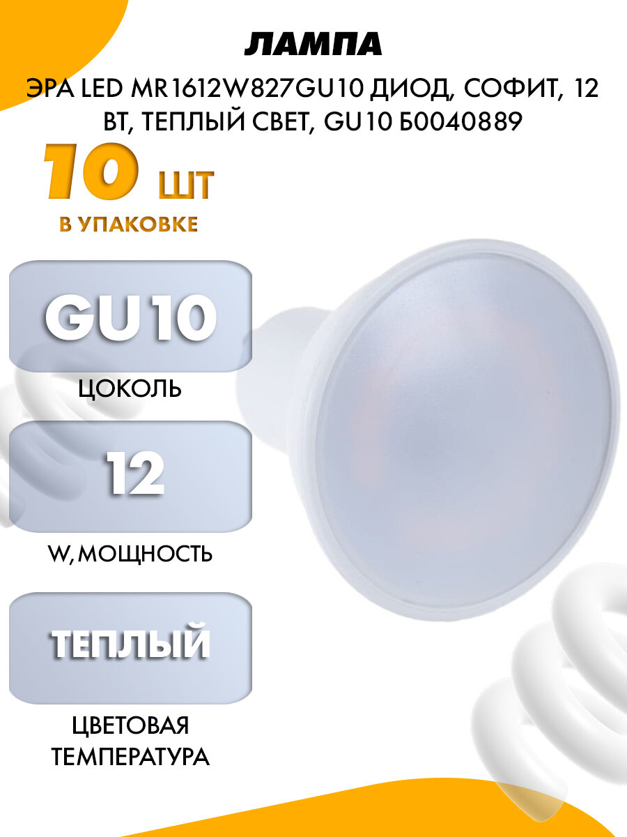 Светодиодные лампы GU10 Эра LED MR16-12W-827-GU10 ЭРА (диод, софит, 12Вт, тепл, GU10) (10/100/3200) Б0040889