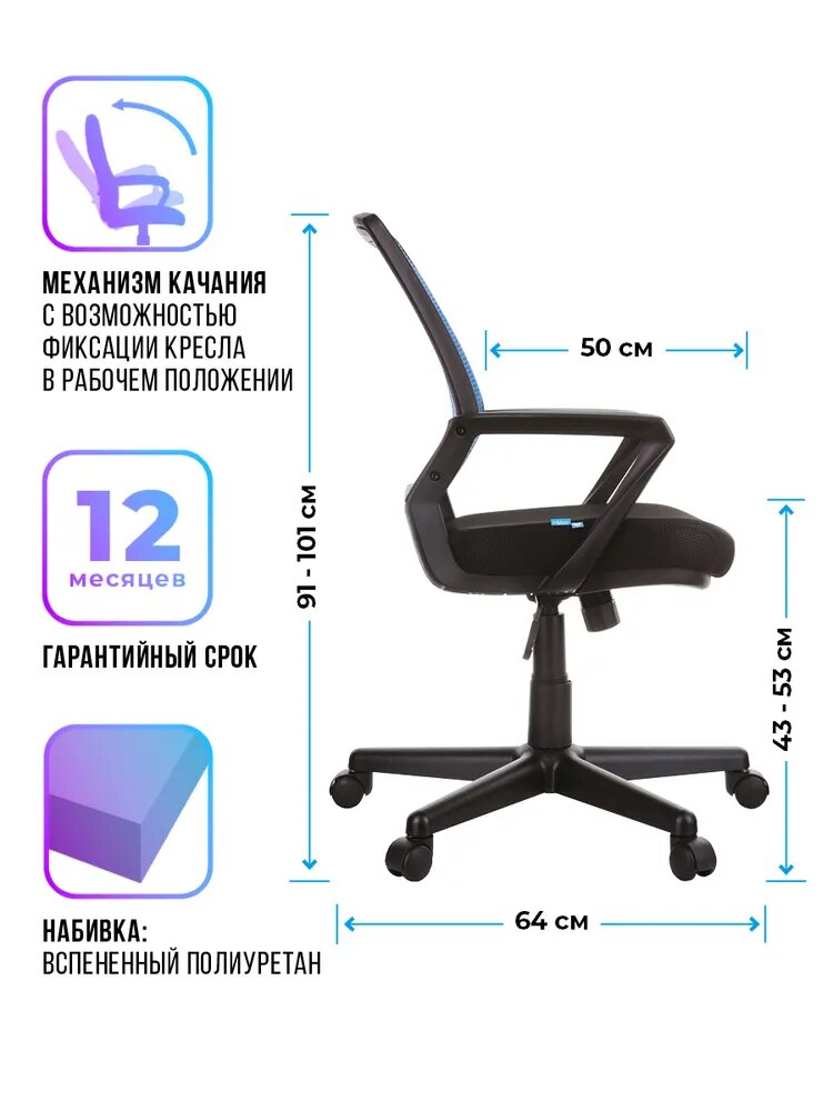| Функциональные особенности | механизм качания, мягкое сиденье, спинка из сетки |