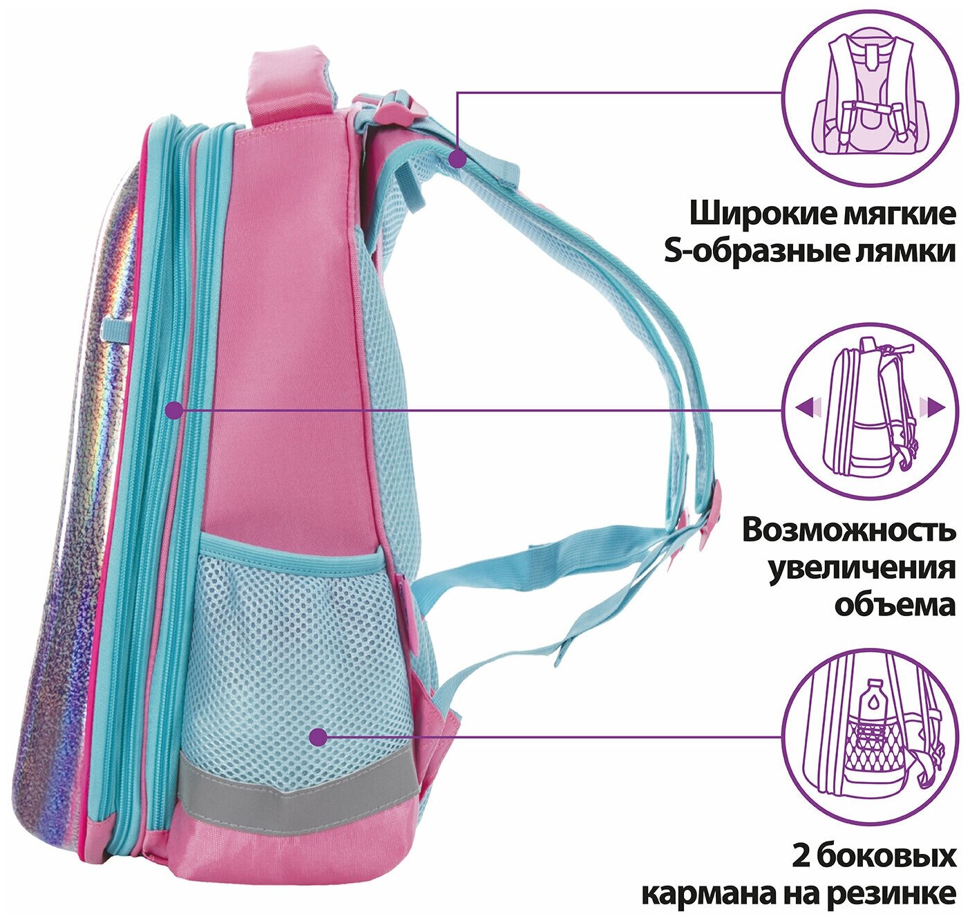 Ранец юнландия EXTRA с дополнительным объемом, Mermaid, 38x29x18 см, 228806 интересное: