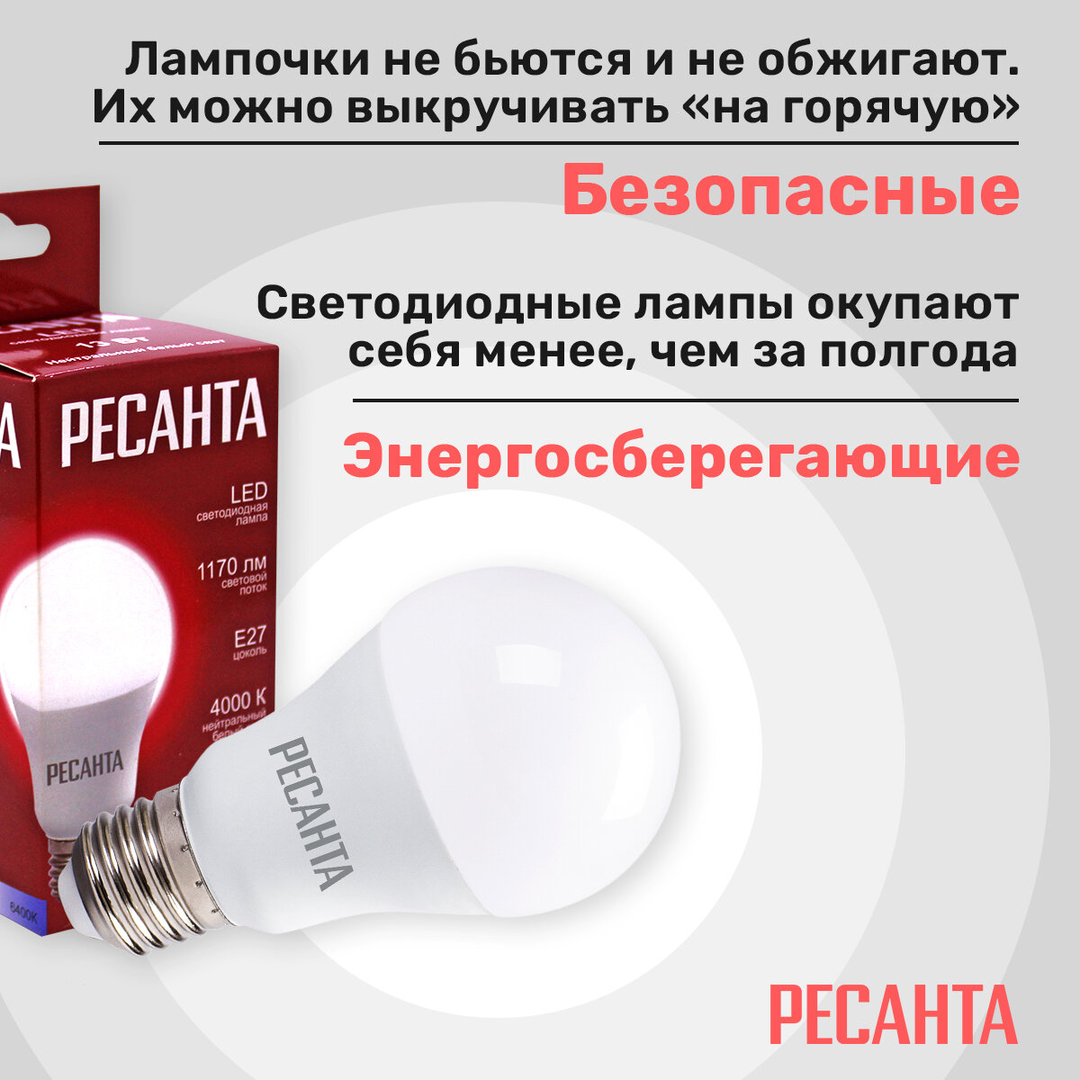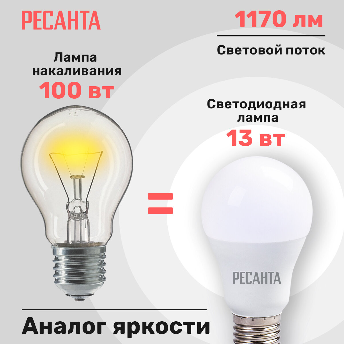 Лампа светодиодная LL-R-A60-13W-230-4K-E27 (груша, 13Вт, нейтр., Е27) Ресанта интересное: