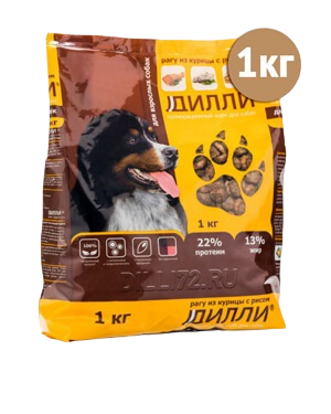 Купить Сухой корм для собак, рагу из курицы с рисом, Дилли 1 кг