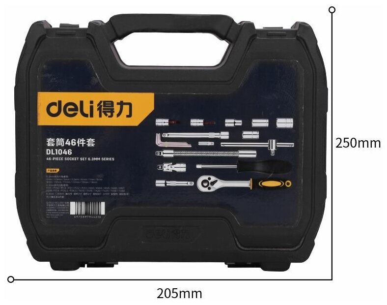 Набор торцевых головок и ключей Deli DL1046 46шт, 1/4",кейс (DL1046)