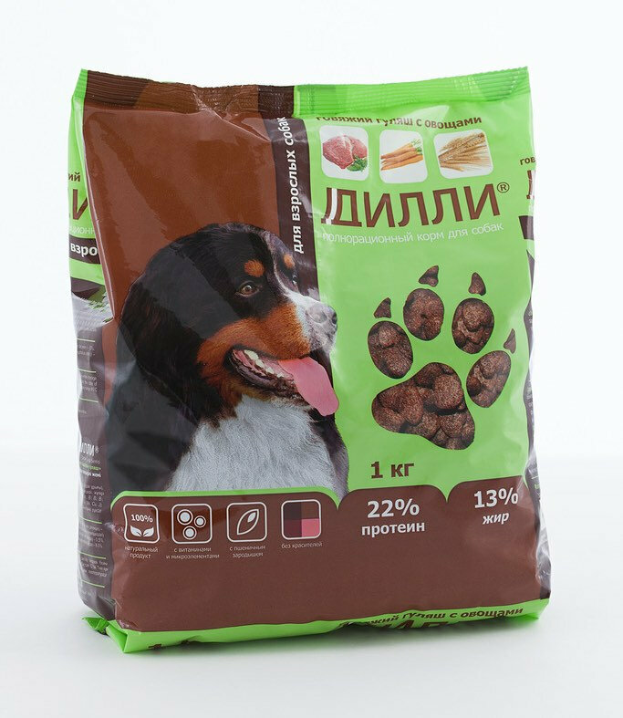 Корм сухой Дилли полнорационный для взрослых собак "Говяжий гуляш с овощами", 1кг