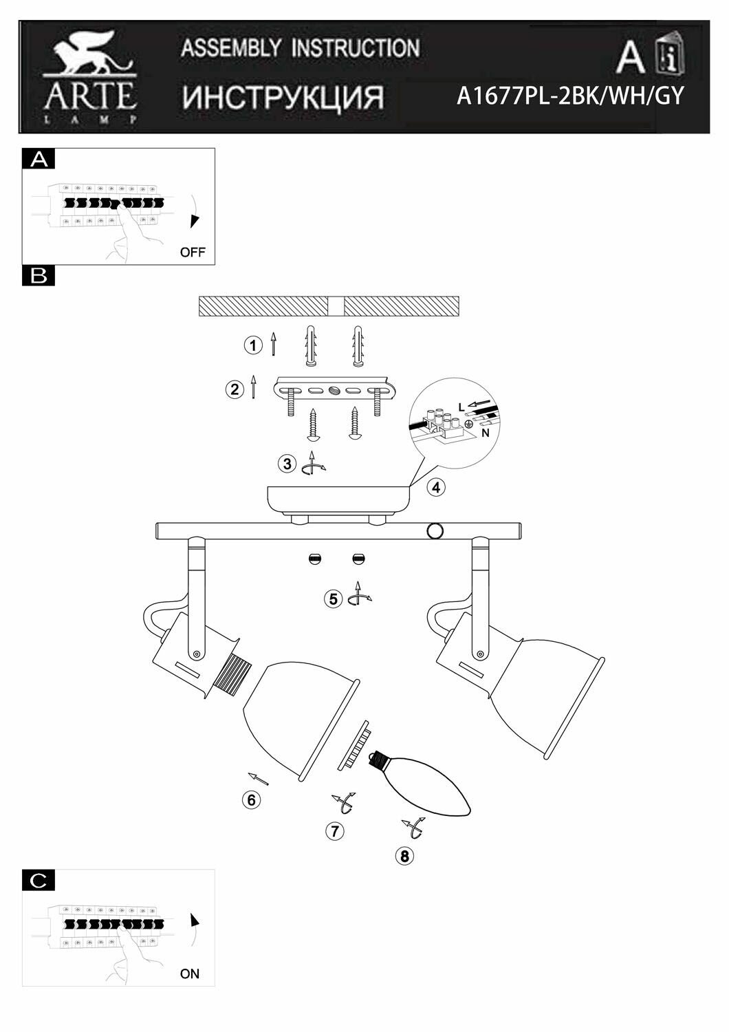 | Подробная комплектация | Споты и трек-системы Arte Lamp A1677PL-2GY |