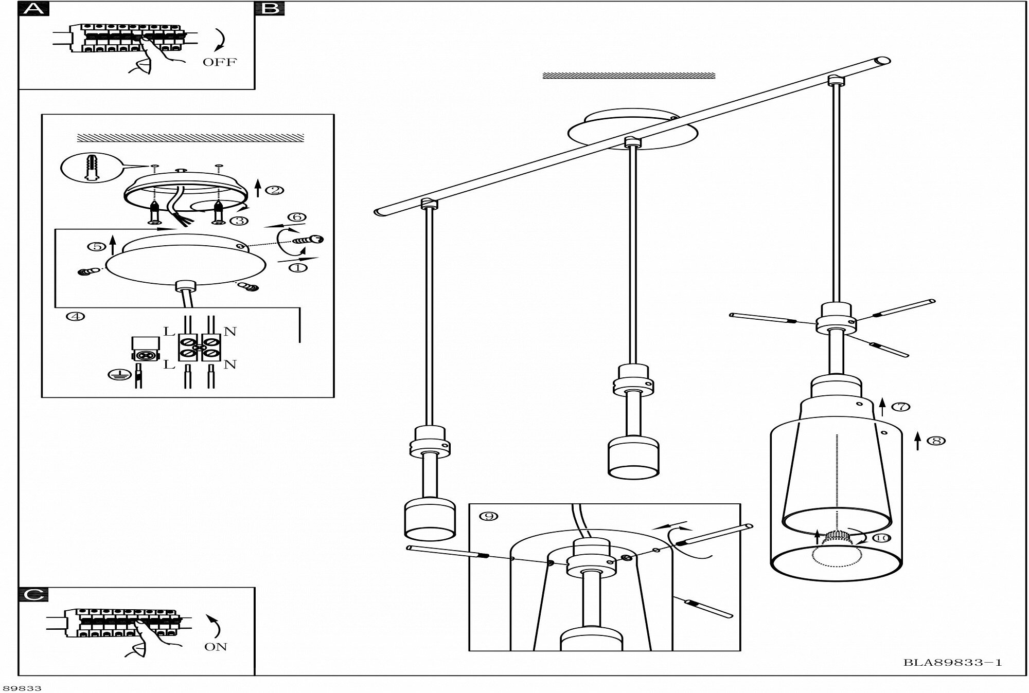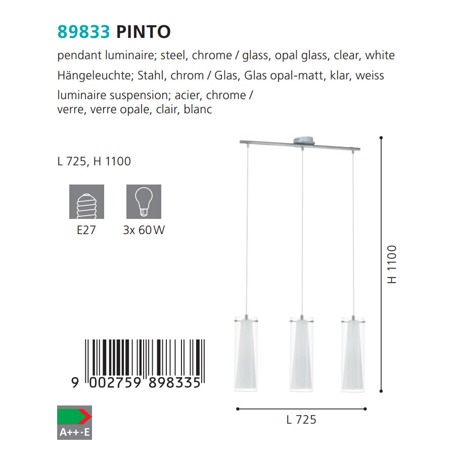 Подвесной светильник 3x60W Стандартный светильник 89833 – Eglo – 9002759898335