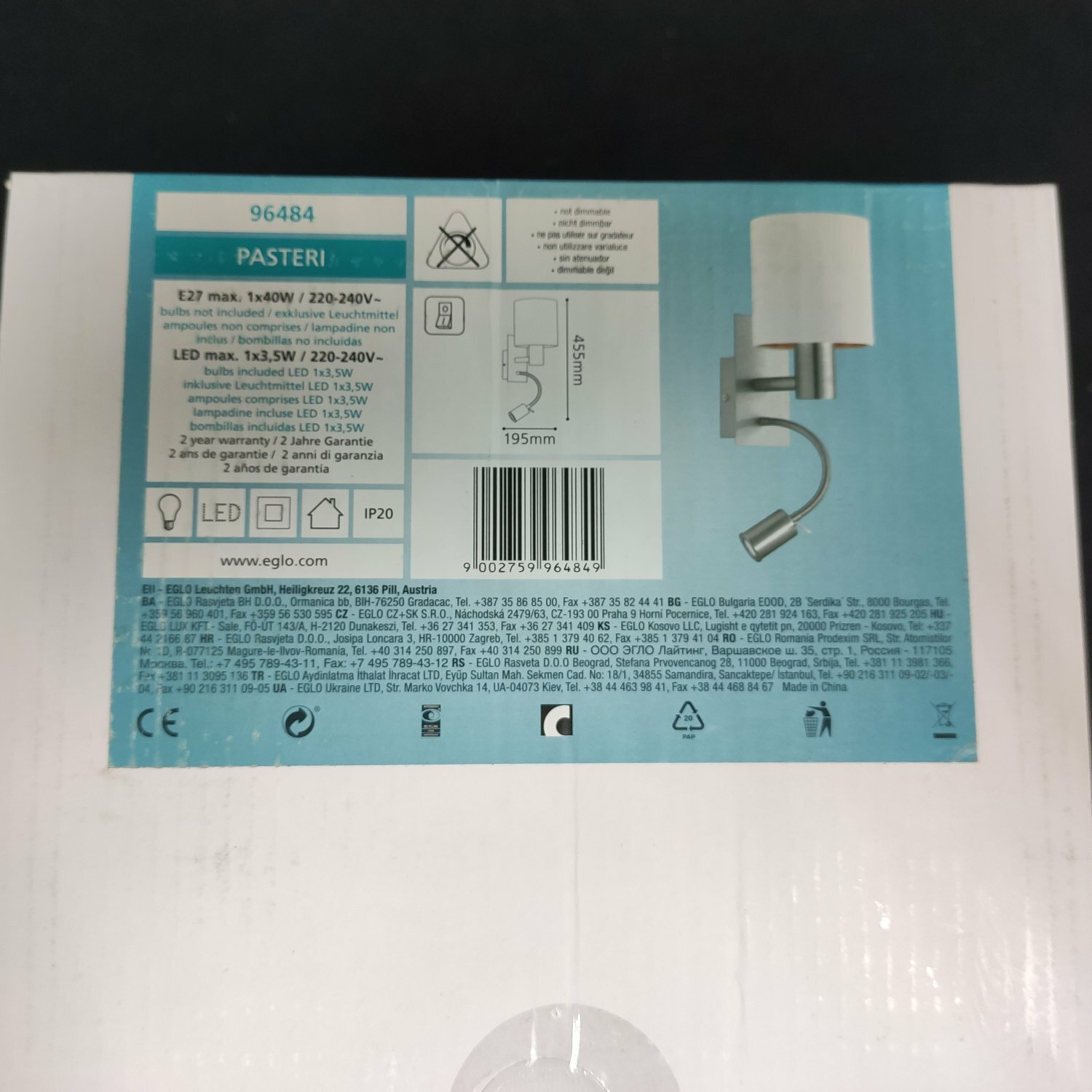 Ниже Вы можете прочитать отзывы на Eglo Бра Eglo Pasteri 96484, ознакомится с подробными характеристиками, посмотреть интересные обзоры и фотографии на Eglo Бра Eglo Pasteri 96484.