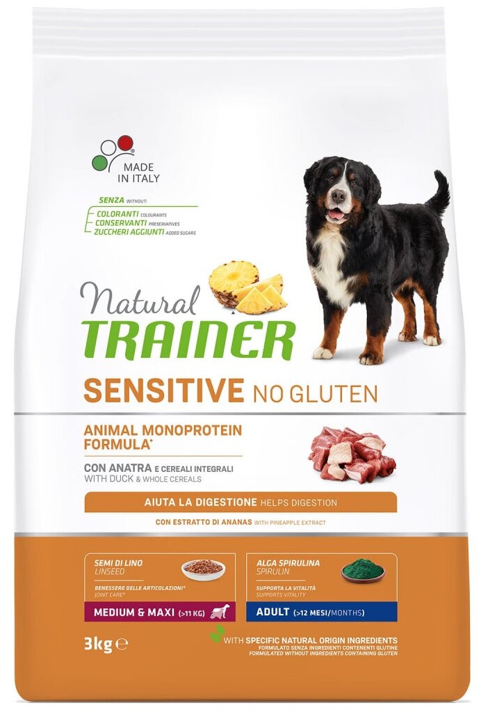 TRAINER NATURAL SENSITIVE NO GLUTEN MEDIUM & MAXI ADULT DUCK безглютеновый для взрослых собак средних и крупных пород с уткой (3 кг)
