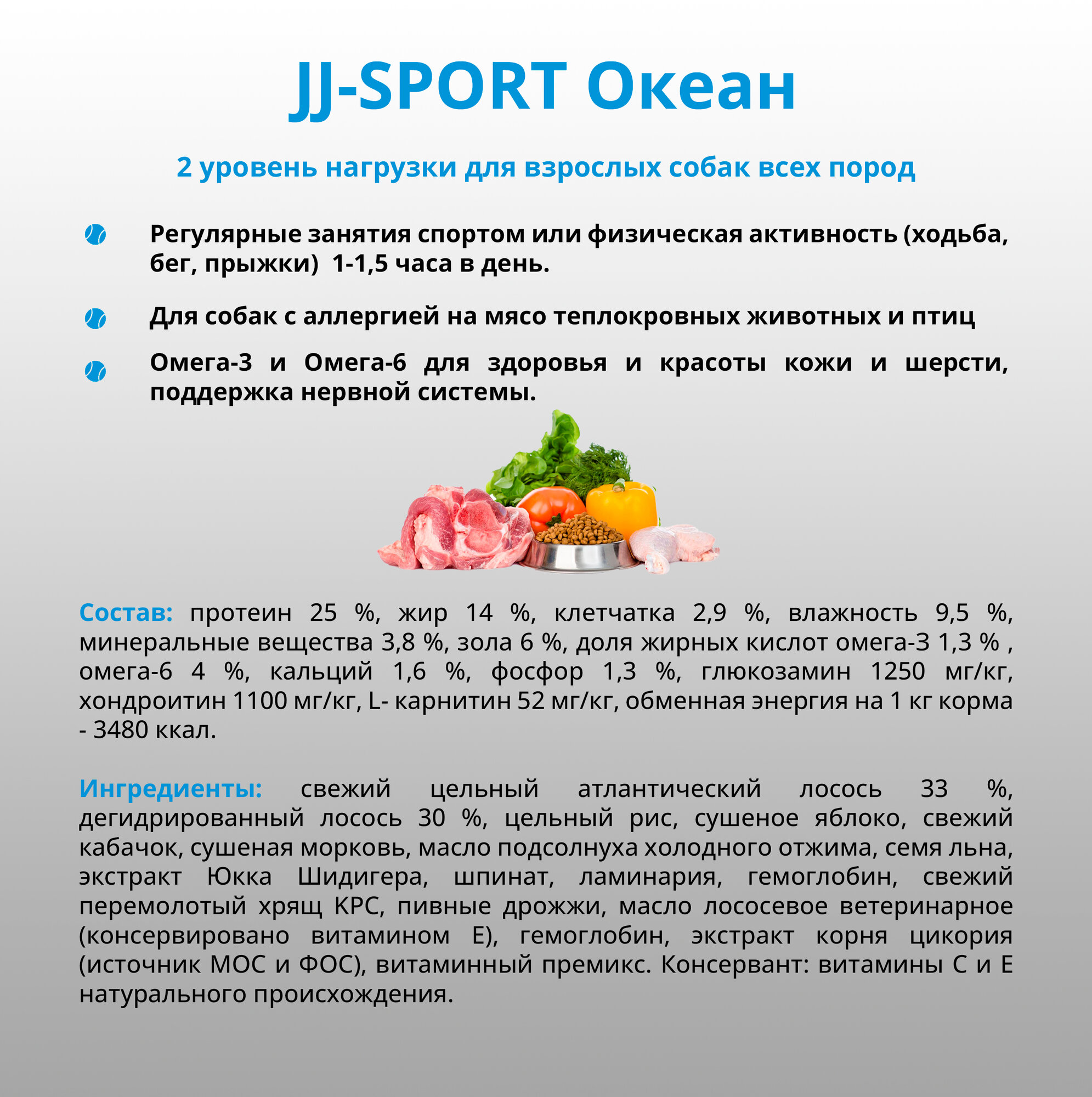 Купить Сухой полнорационный корм JJ-SPORT "Океан" Живая Сила для взрослых собак с аллергиями с рыбой, мелкая гранула 20 кг