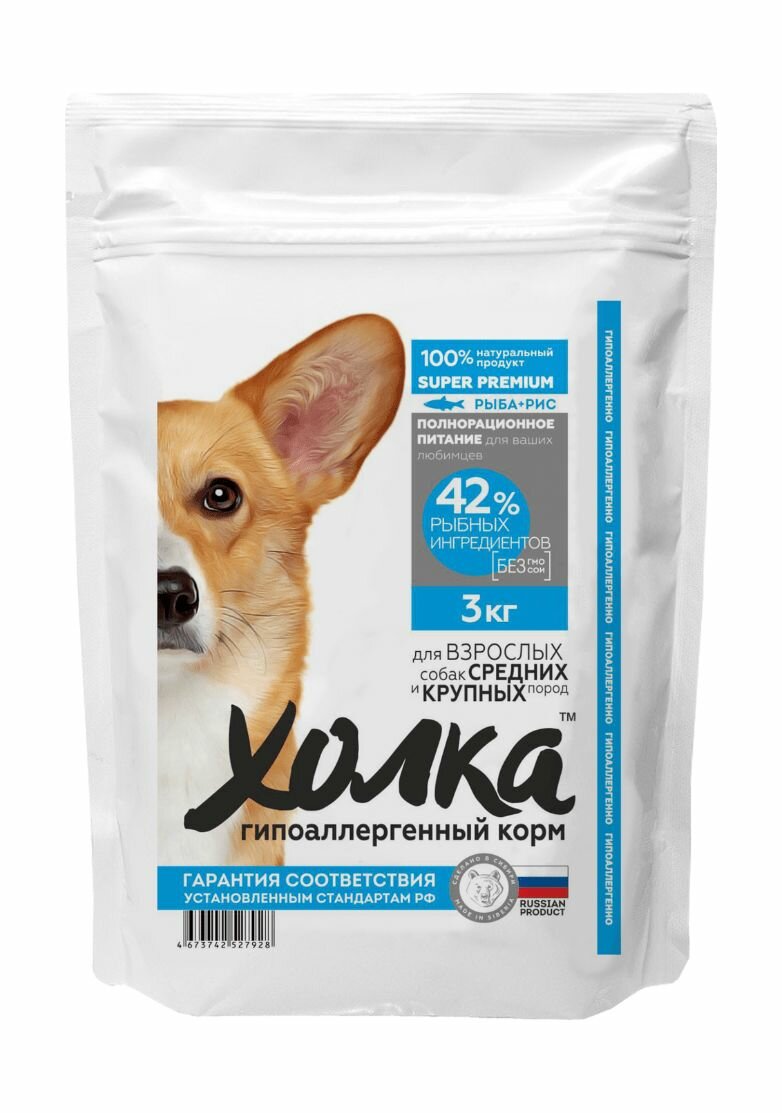 Гипоаллергенный сухой корм для собак средних и крупных пород, рыба и рис, Холка 3 кг
