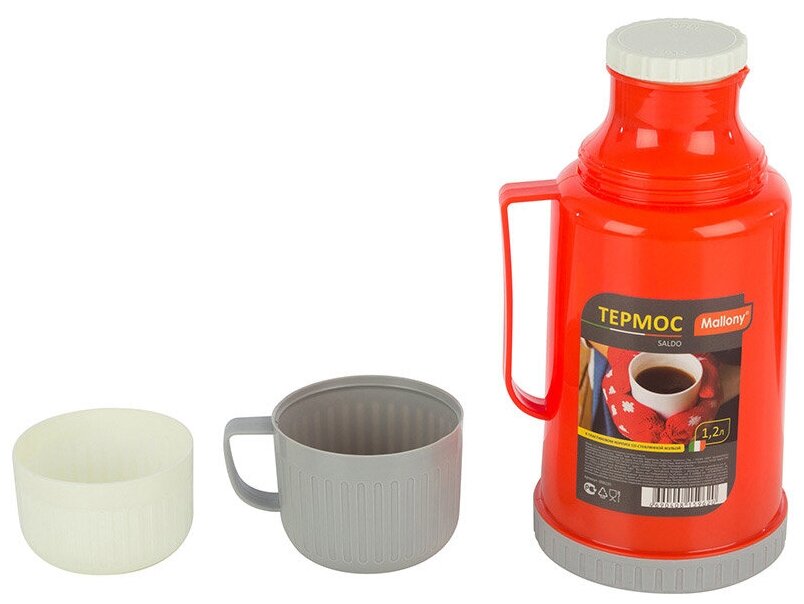 Термос SALDO 1,2л, стеклянная колба, пластик.корпус, 2чашки, 8235 Mallony