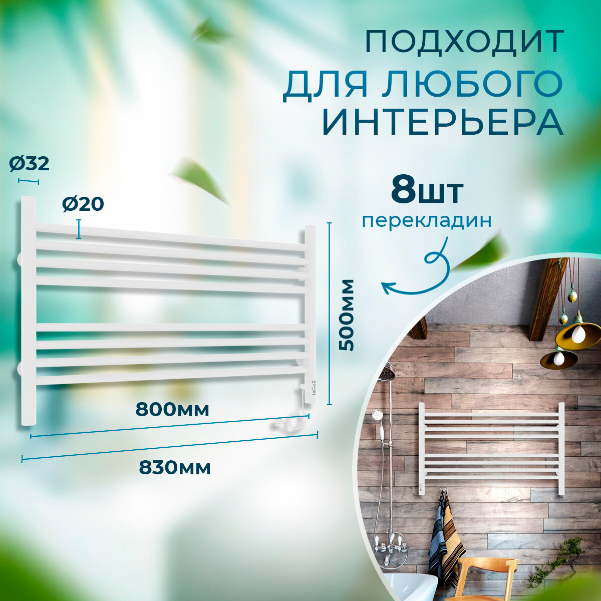 Полотенцесушитель электрический LARIS оливия 800мм 500мм белый матовый муар правое подключение широкий