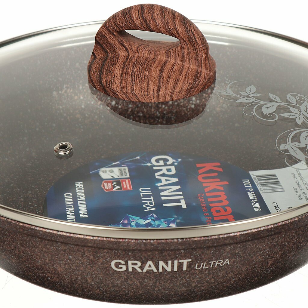 KUKMARA Сковорода Granit ultra, d26 см, стеклянная крышка, съёмная ручка, антипригарное покрытие