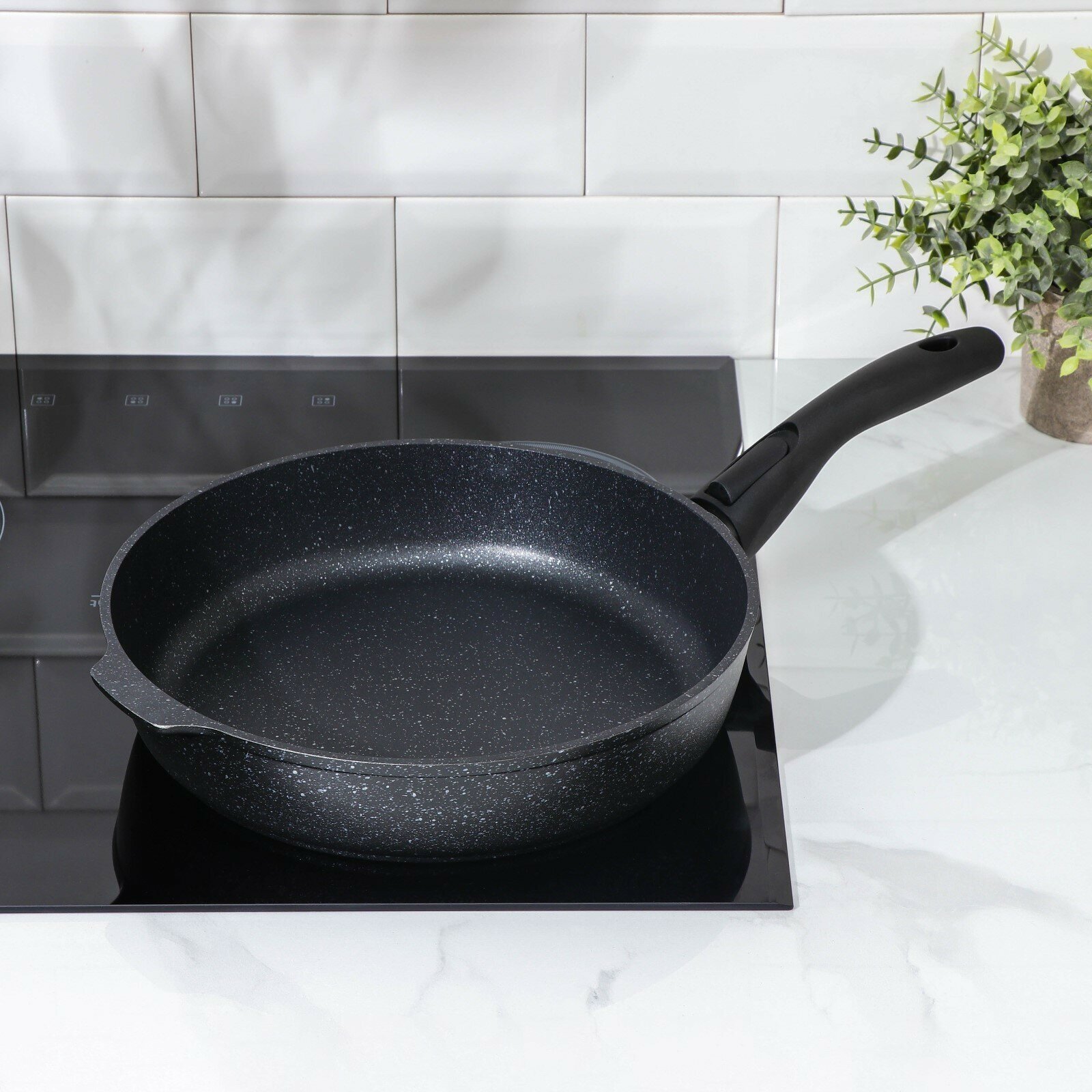 Сковорода, d=28 см, съёмная ручка, антипригарное покрытие, тёмный мрамор