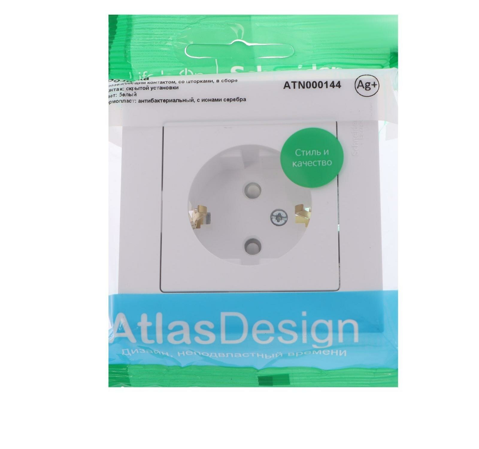 Розетка ATLASDESIGN, скрытый монтаж, с заземлением, со шторками, белый | код. ATN000144 | Schneider Electric (4шт.в упак.)