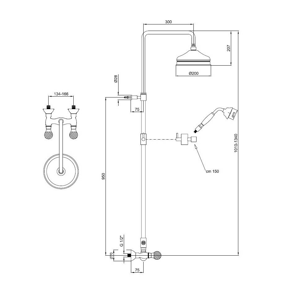 | Дополнительная информация | высота стойки для душа: 1340 мм; диаметр верхнего душа: 200 мм |