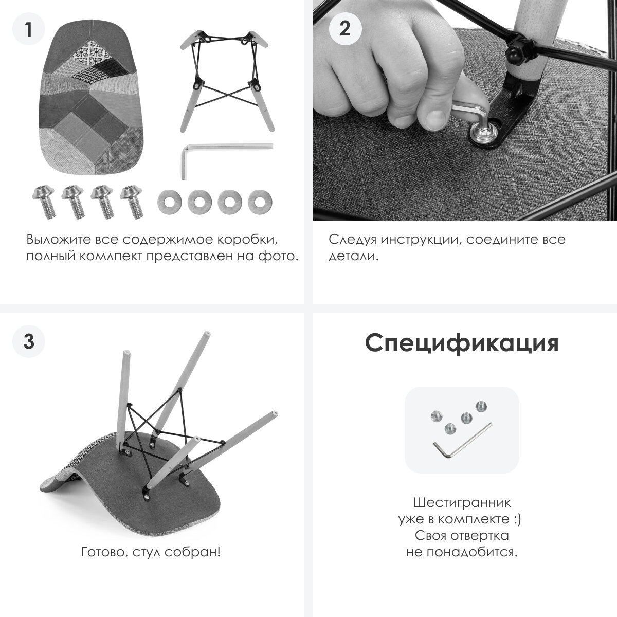 | Минусы: | На 2 из 4 стульев ну оооочень туго совпадают отверстия для креплений, если собирать одному, то точно не получится |