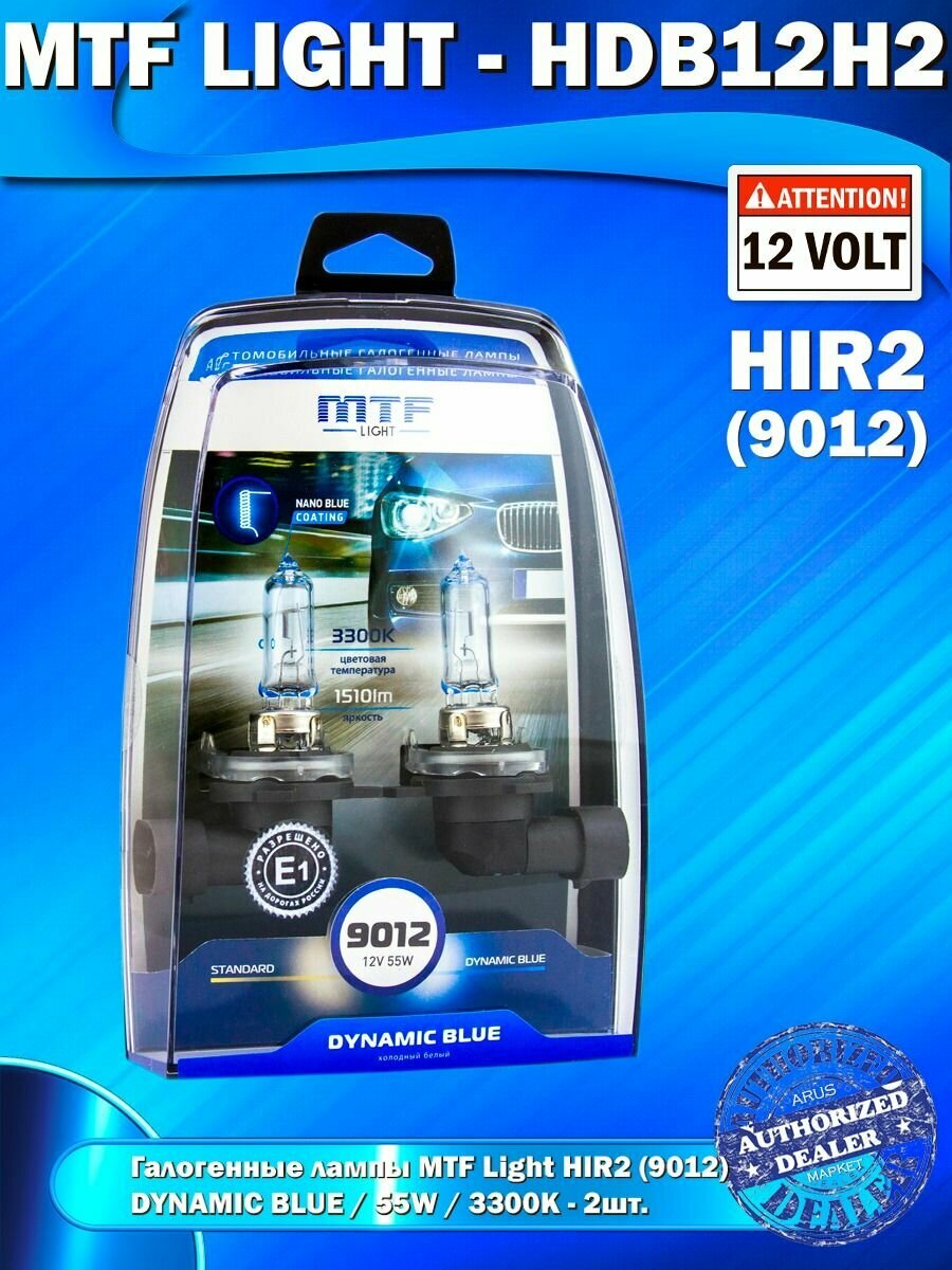 Купить Автолампы HIR2(9012) - Галогенные лампы MTF Light серия DYNAMIC BLUE 3300K