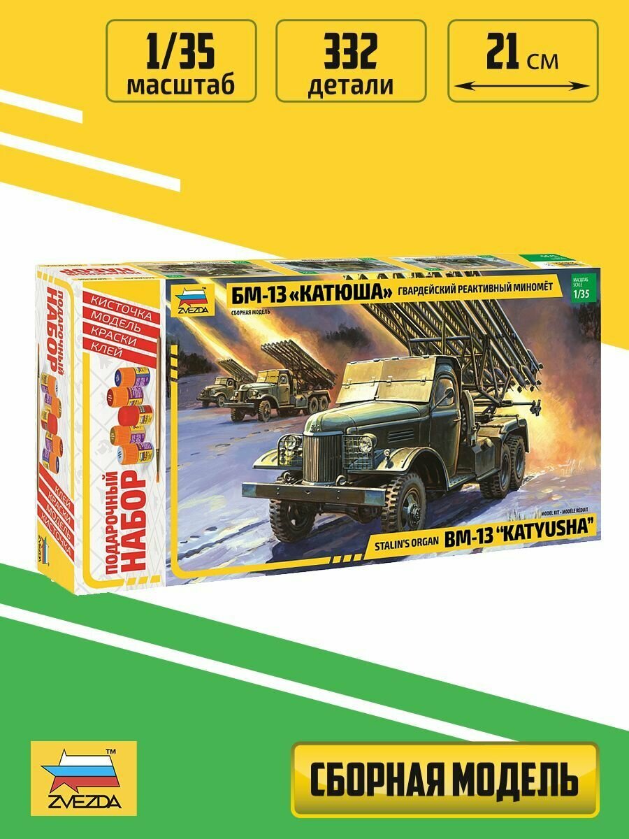 Сборная модель ZVEZDA "Гвардейский реактивный миномет БМ-13 «Катюша»"+ подарочный набор 3521ПН