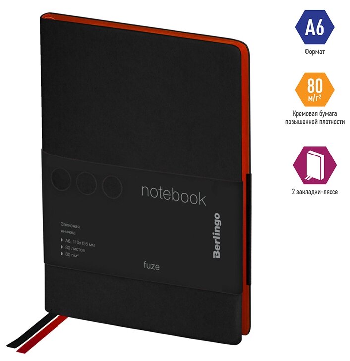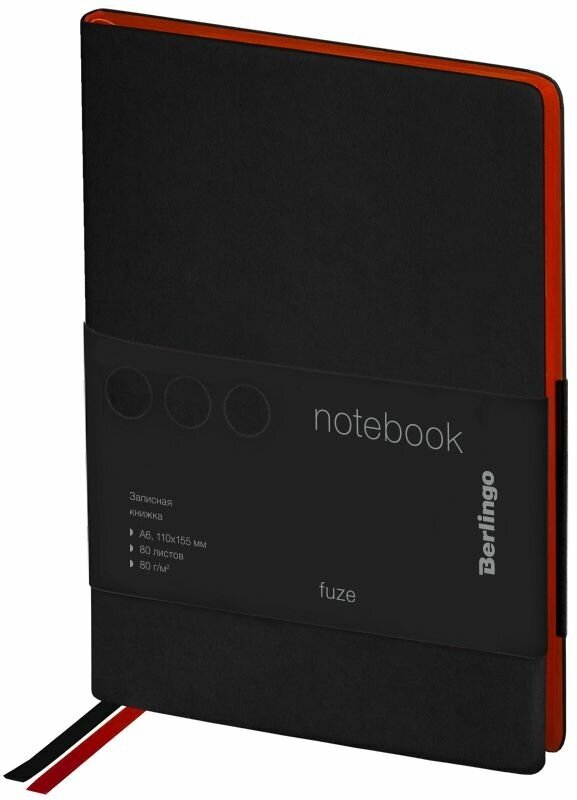 Записная книжка Berlingo "Fuze", А6, 80 л, кожзам, цветной срез, черный