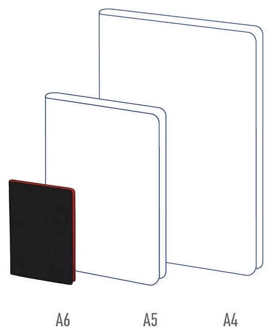 Комплект 6 шт, Записная книжка А6 80л, кожзам, Berlingo "Fuze", черный срез, красный
