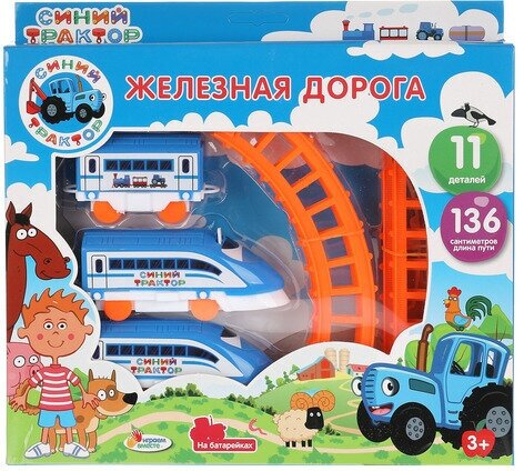 Железная дорога Играем вместе мультяшная Синий Трактор, длина пути 136 см интересное: