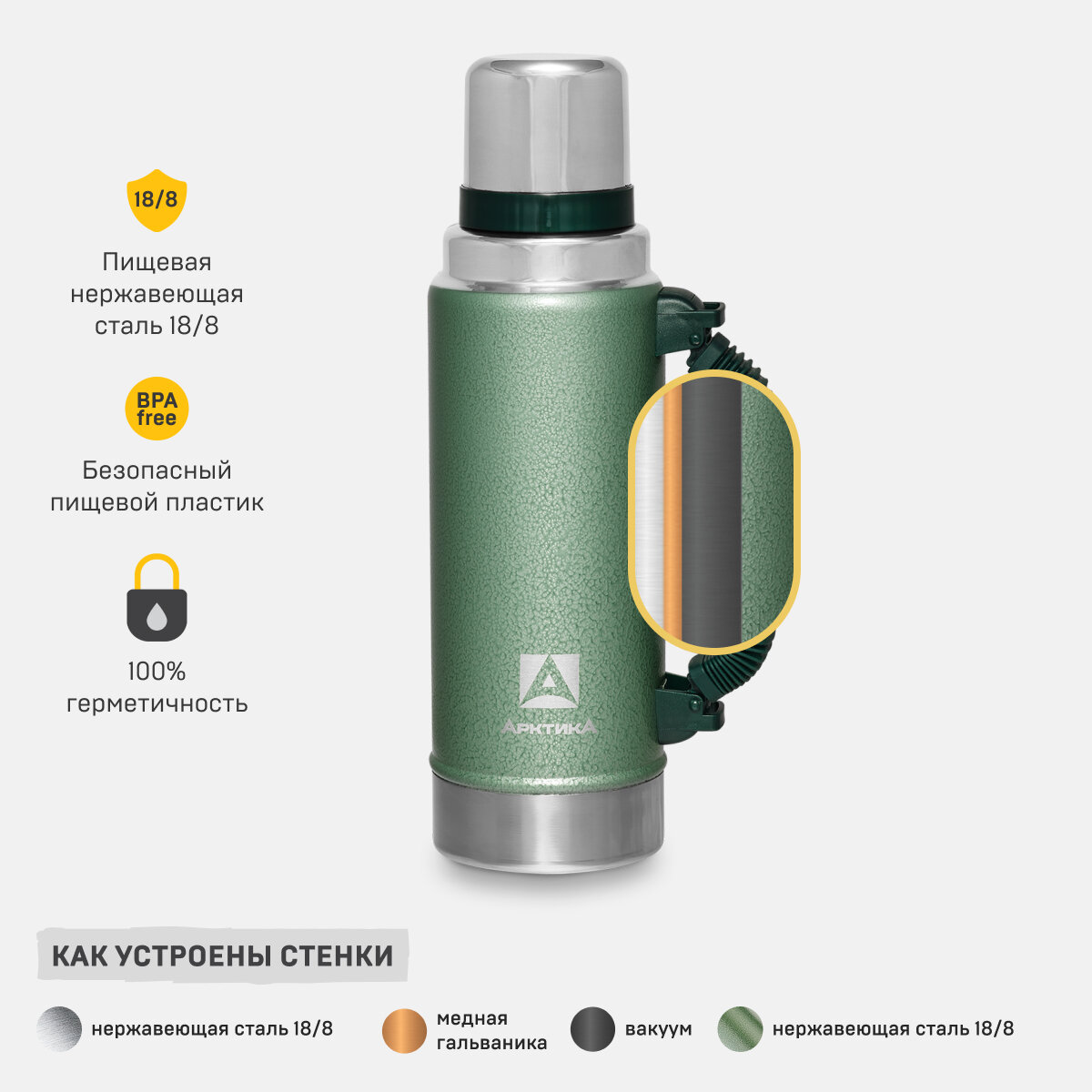Арктика Термос с ручкой 106-2200Р-GN для напитков 2,2л