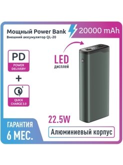 СохранитьВнешний аккумулятор QL-20/ 20000mAh/ 22.5W/ Power bank QuickCharge3.0 / PowerDelivery/ LCD/ серый интересное: