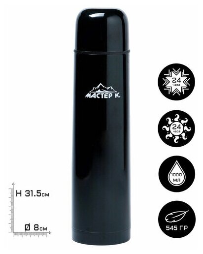 Термос"Мастер К", 1 л ( 5 лет), сохраняет тепло 24 ч, чёрный Мастер К. 3940533 интересное: