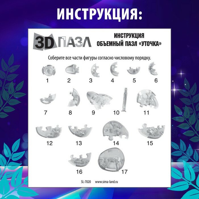 Купить Пазл 3D кристаллический «Уточка», 17 деталей, цвета микс
