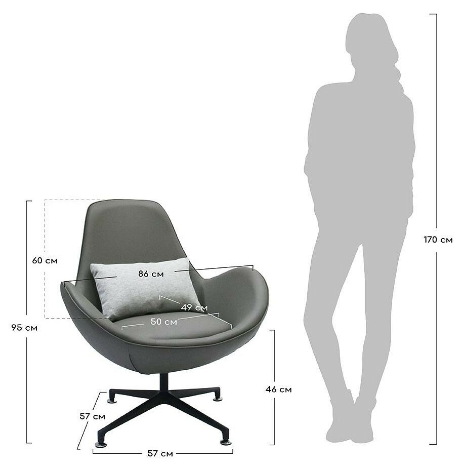 Кресло мягкое SWAN темно-серый, для отдыха, взрослое, крутящееся, круглое на ножке, офисное для руководителя, интерьерное для дома в гостиную