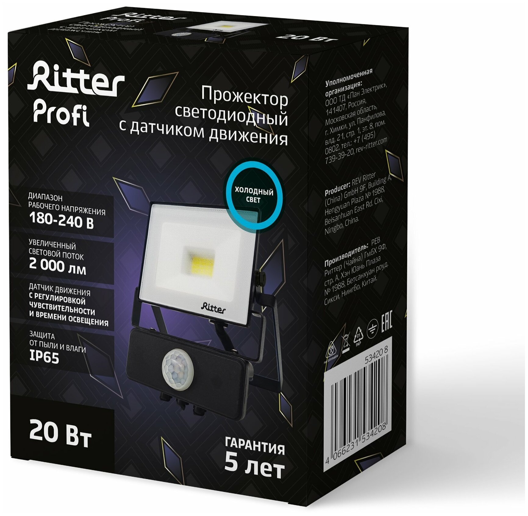 Прожектор Ritter светодиодн PROFI 230В 20 Вт 6500К 2000Лм IP65 с датчиком движения черный 53420 8