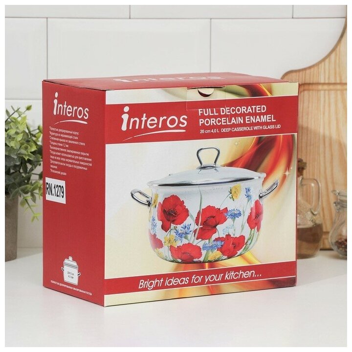 Кастрюля (INTEROS Кружево глубокая 4,0 л. стекл./кр.*4 1279)