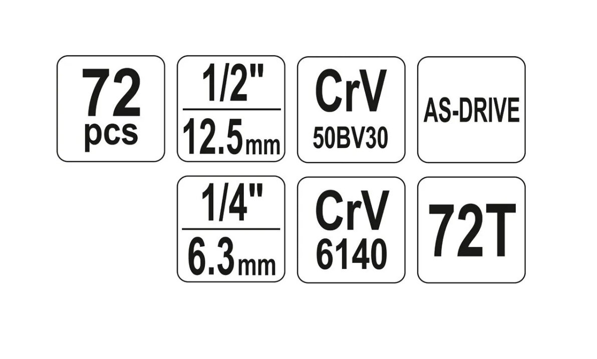 Набор инструментов 72 пр: 1/4, 1/2, 6 гр YATO YT-38782 | цена за 1 шт | минимальный заказ 1