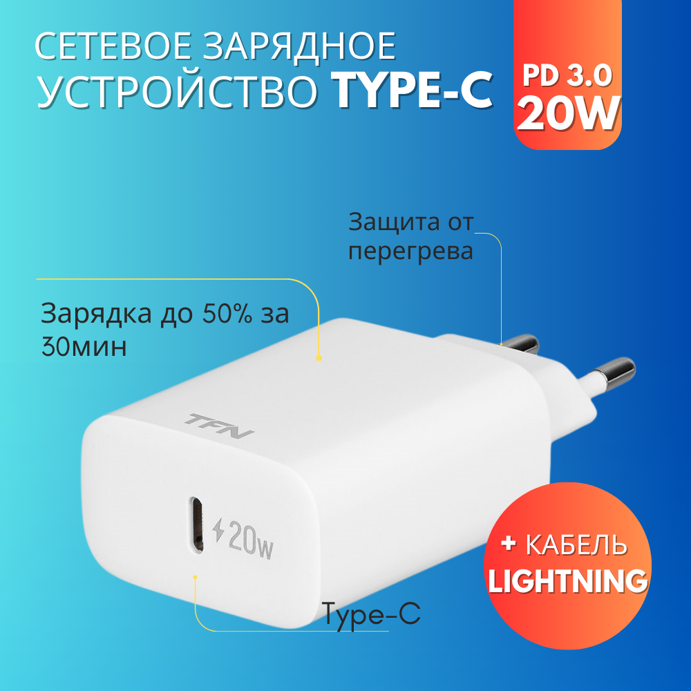 Зарядное устройство TFN "Lightning", сетевое, Type-C, 20 Вт (TFN-WC13)