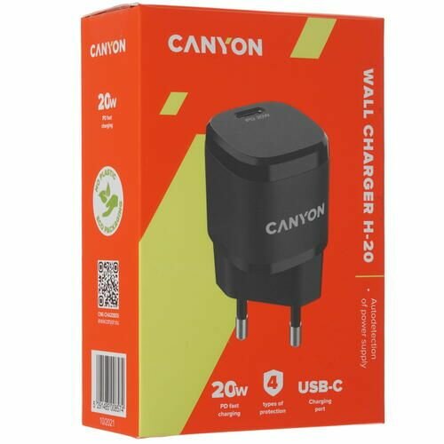 Сетевое зарядное устройство CANYON H-20-05, PD 20W (2CN-ECHA20B05) черный