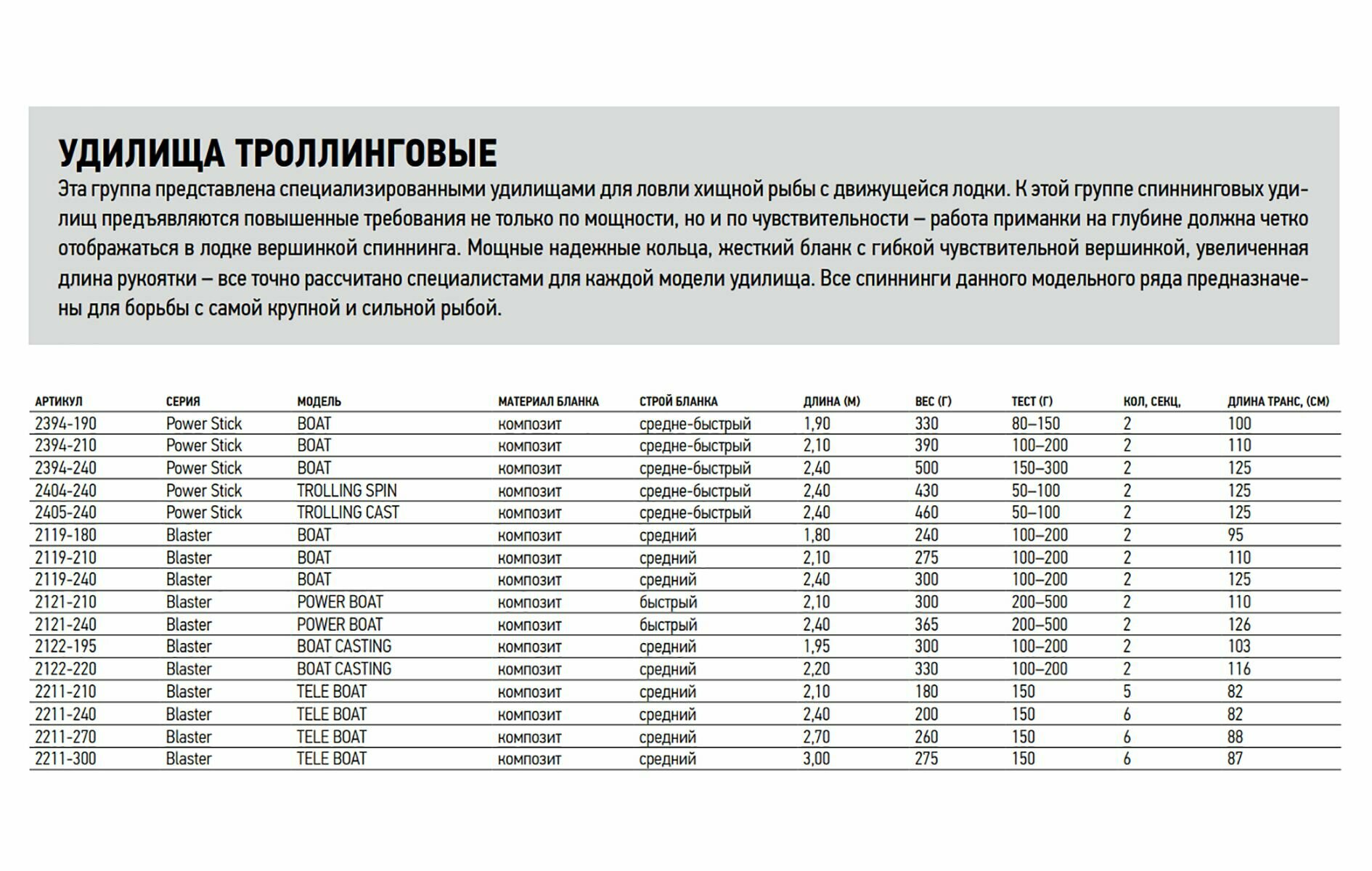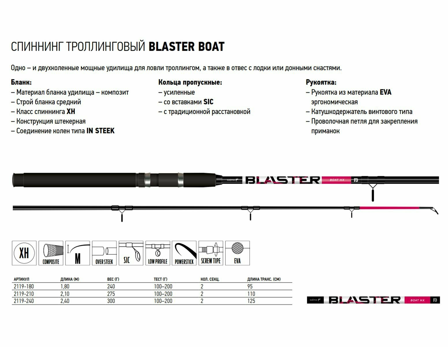 Ниже Вы можете прочитать отзывы на Salmo Удилище троллинговое SALMO BLASTER BOAT (2119-240 240 см 100-200 гр), ознакомится с подробными характеристиками, посмотреть интересные обзоры и фотографии на Salmo Удилище троллинговое SALMO BLASTER BOAT (2119-240 240 см 100-200 гр).