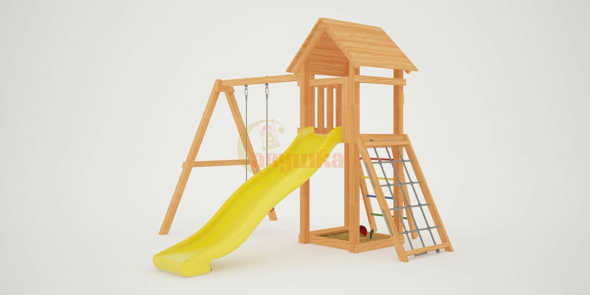 | В комплекте | горка, качели, песочница, сетка для лазания |