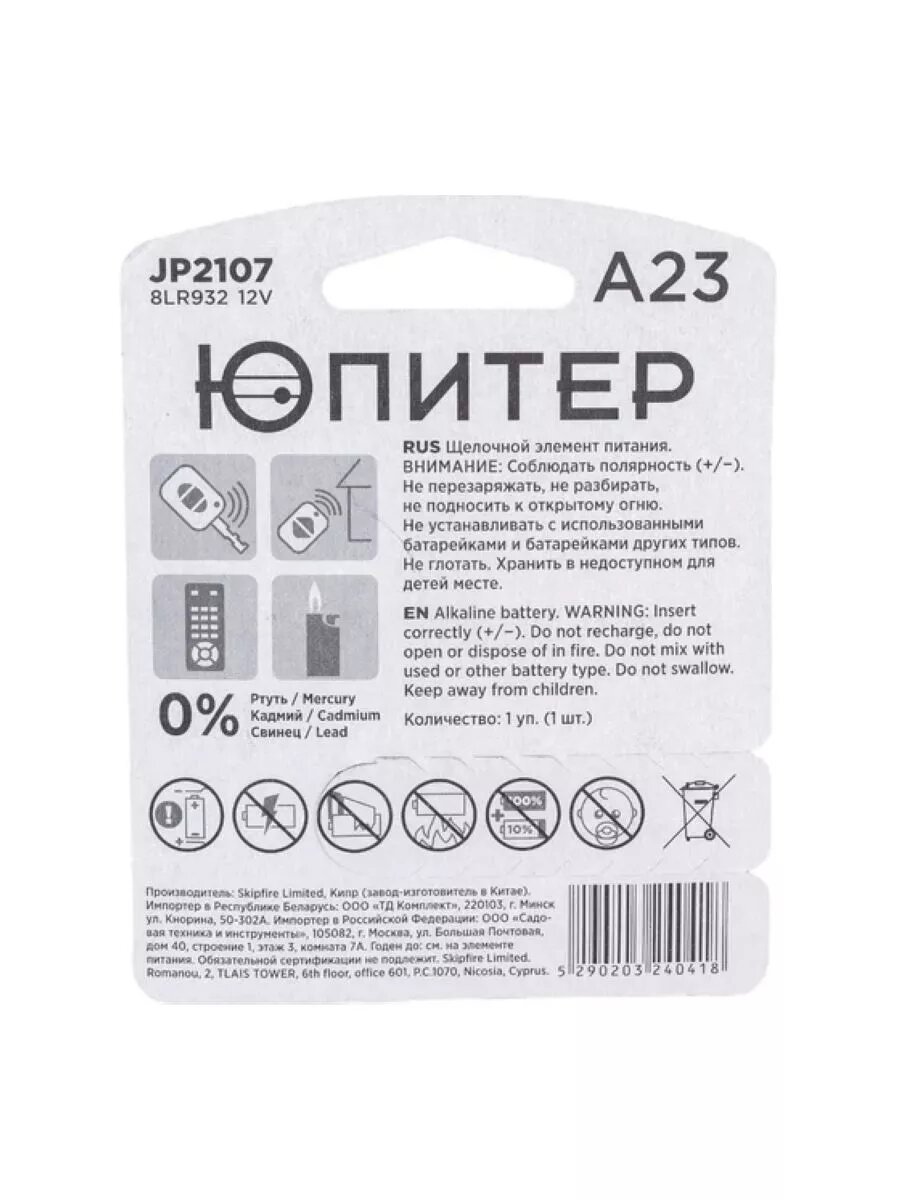 Батарейка А23 юпитер 12 V алкалиновая (JP2107) интересное: