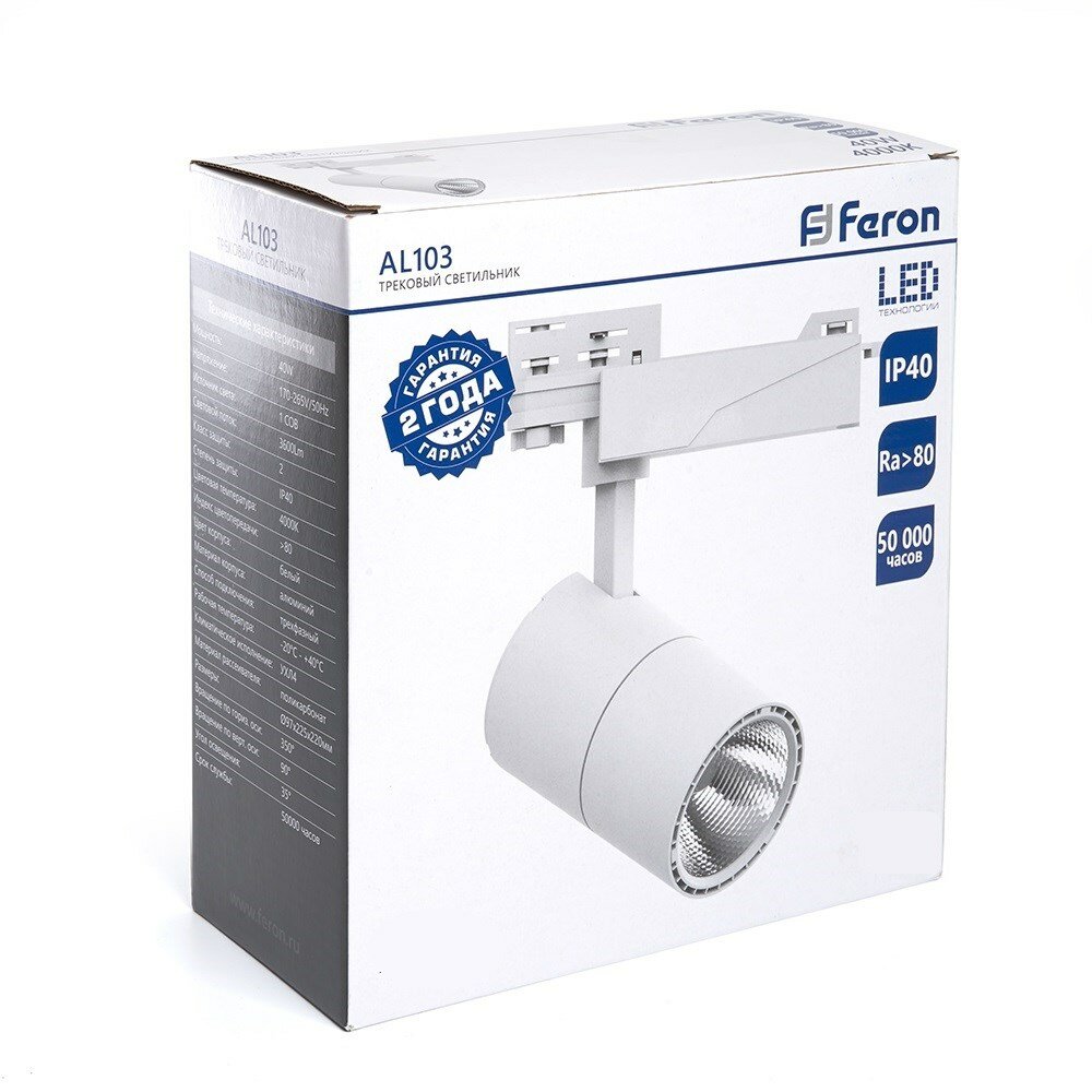 Светодиодный светильник Feron AL103 трековый однофазный на шинопровод 30W 4000K, 35 градусов, белый FERON 29515 (1 шт.)