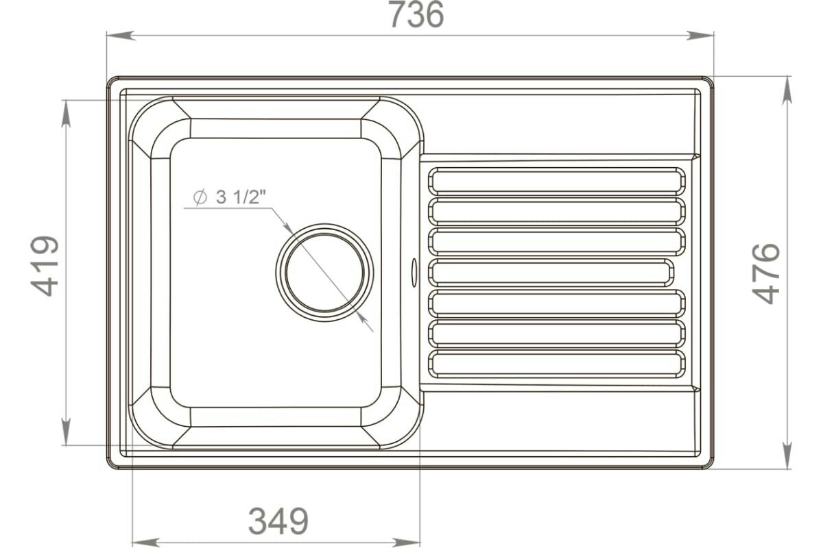 Врезная кухонная мойка 74 см, Reflection Bolero 74, матовое серый