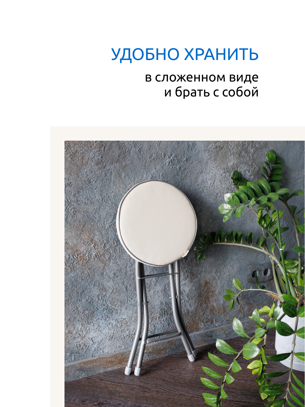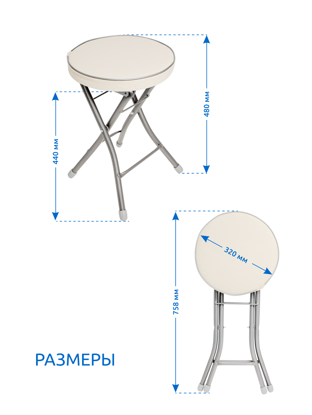 Табурет складной 330*330*480 мм слоновая кость