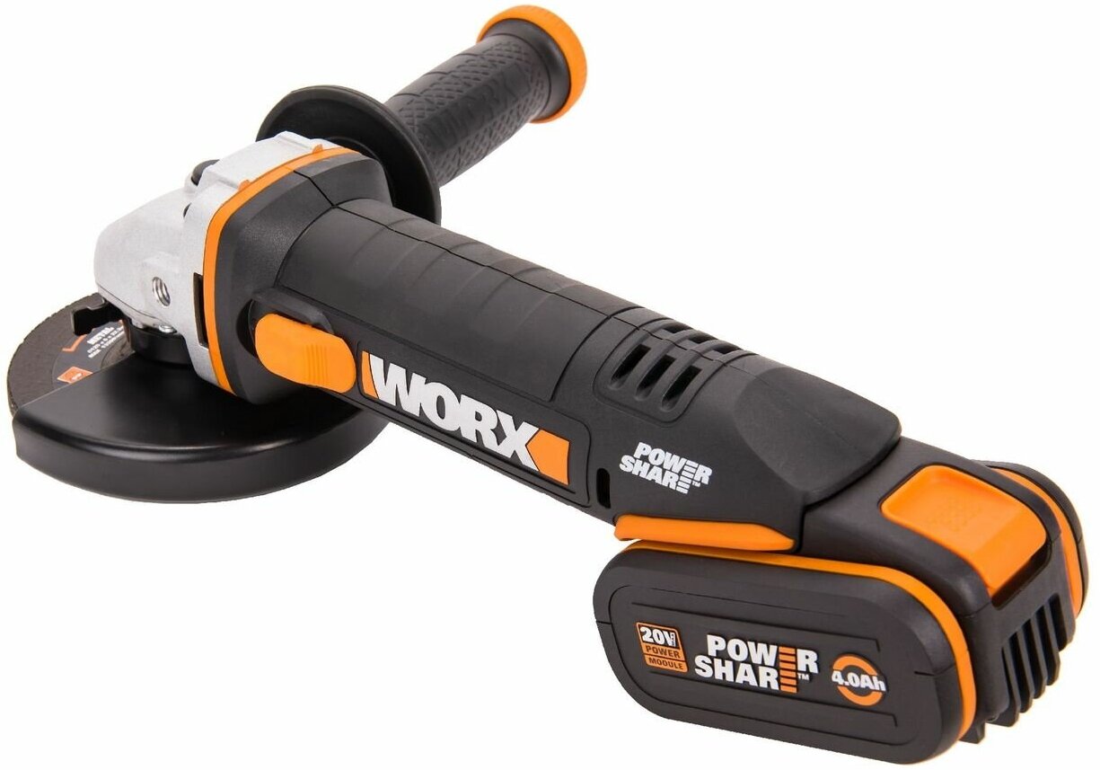 Ушм с регулировкой оборотов 125 диаметр диска Worx WX803, 20В, 4 А*ч, угловая шлифмашина аккумуляторная