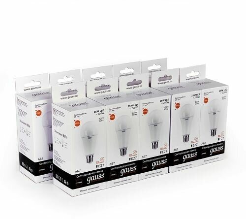 GAUSS 73215 Светодиодная лампа LED Elementary A67 25W E27 2000lm 3000K 1 10 50 0