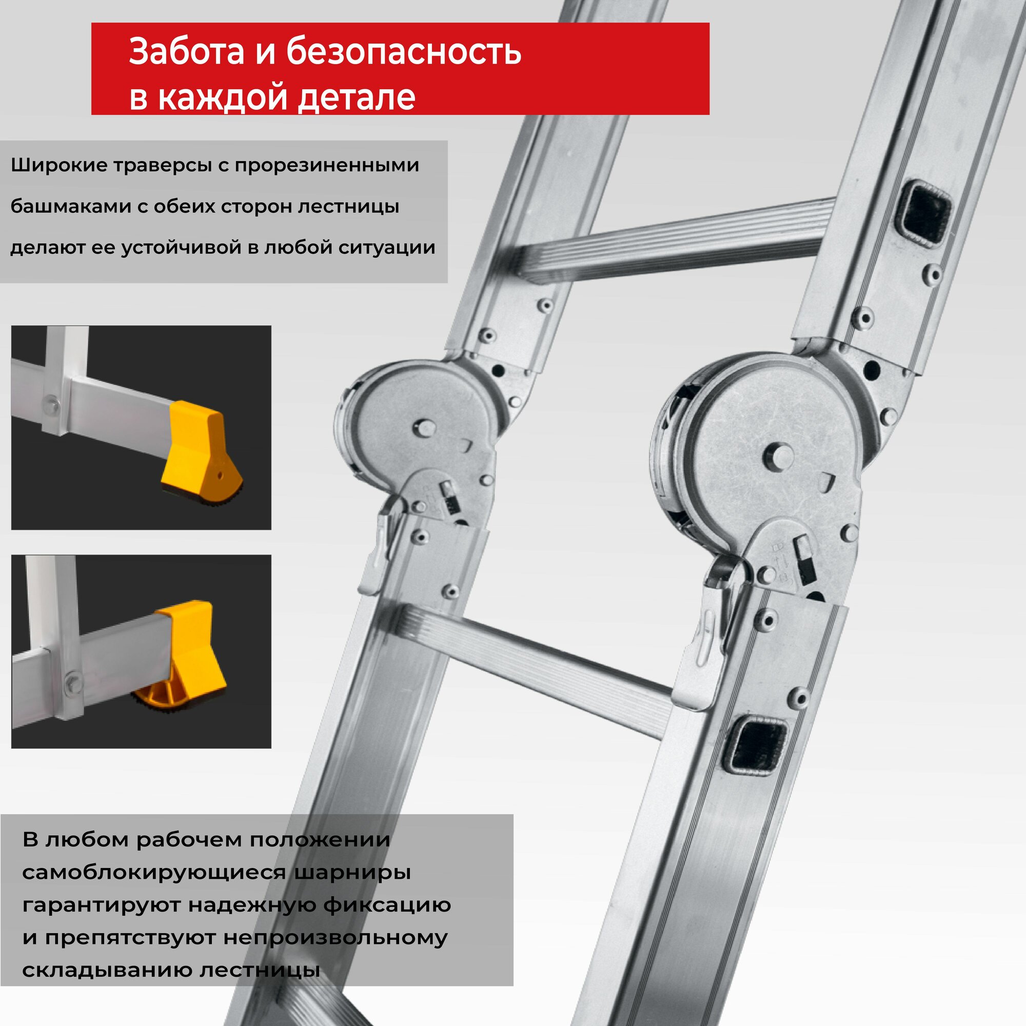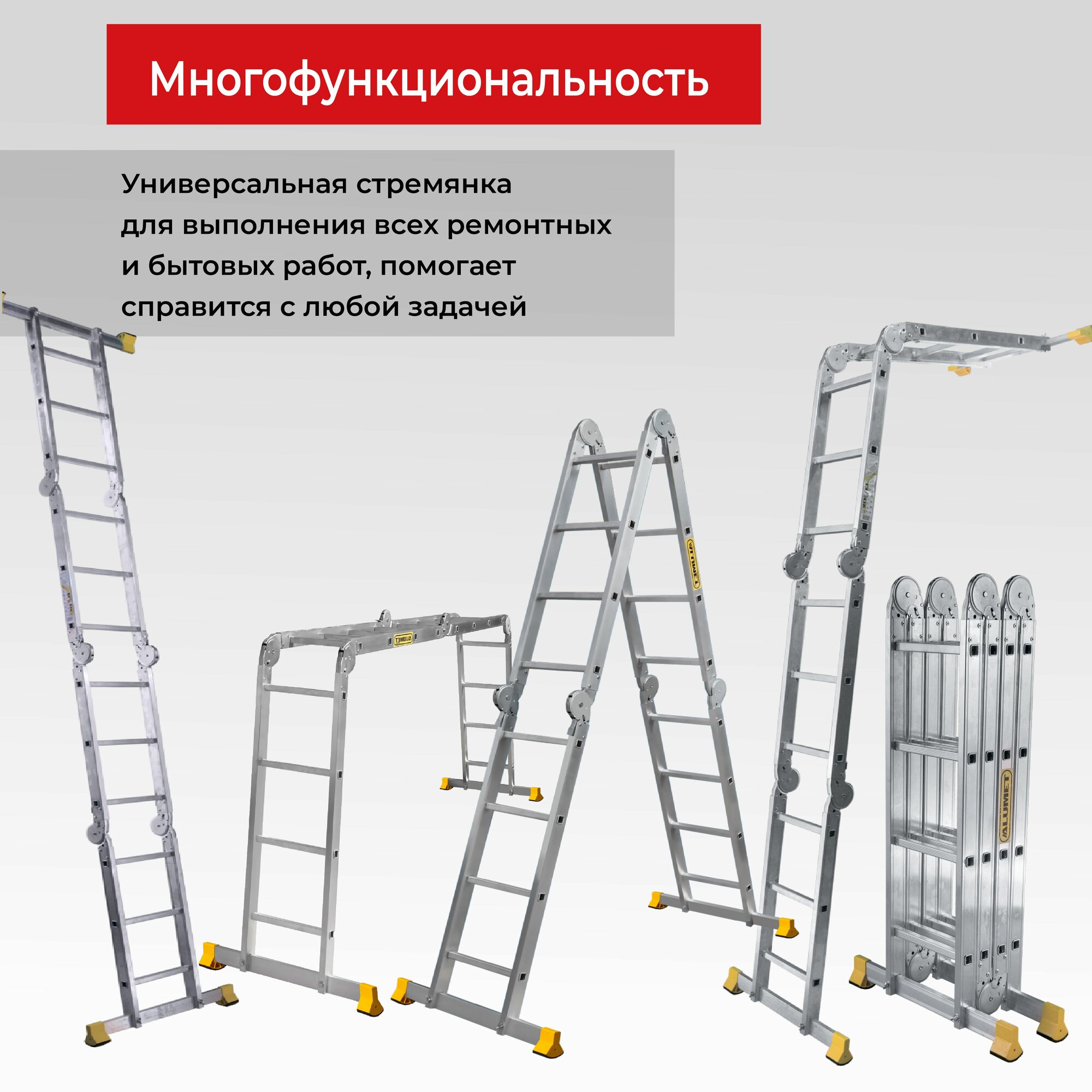 Алюминиевая четырехсекционная шарнирная лестница-трансформер Alumet Т455/ / 5х4 ступени, 4.67 м