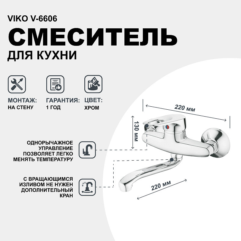 Смеситель для кухни настенный VIKO V-6606, цвет хром