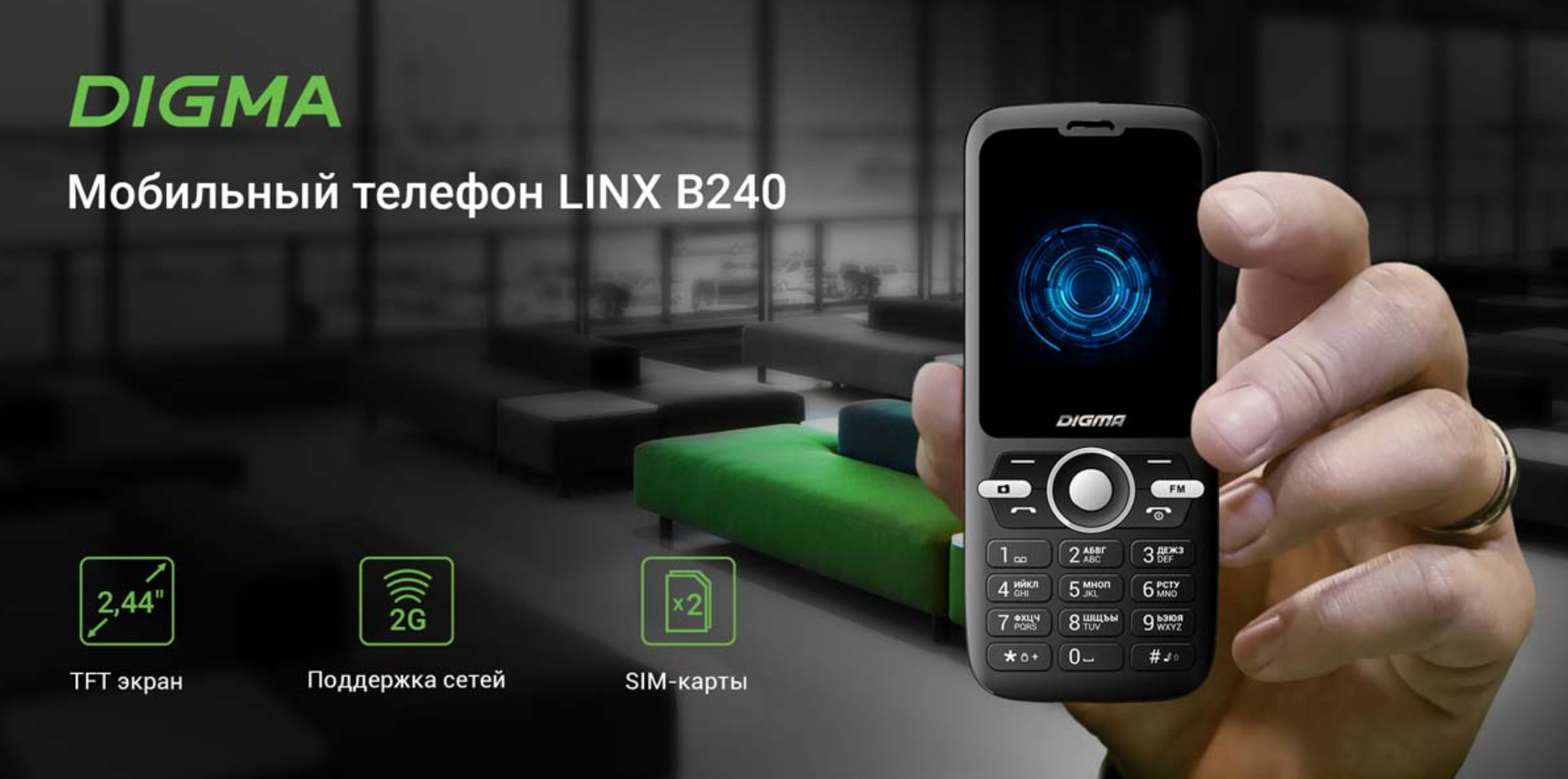 Телефон DIGMA LINX B240, 2 SIM, черный