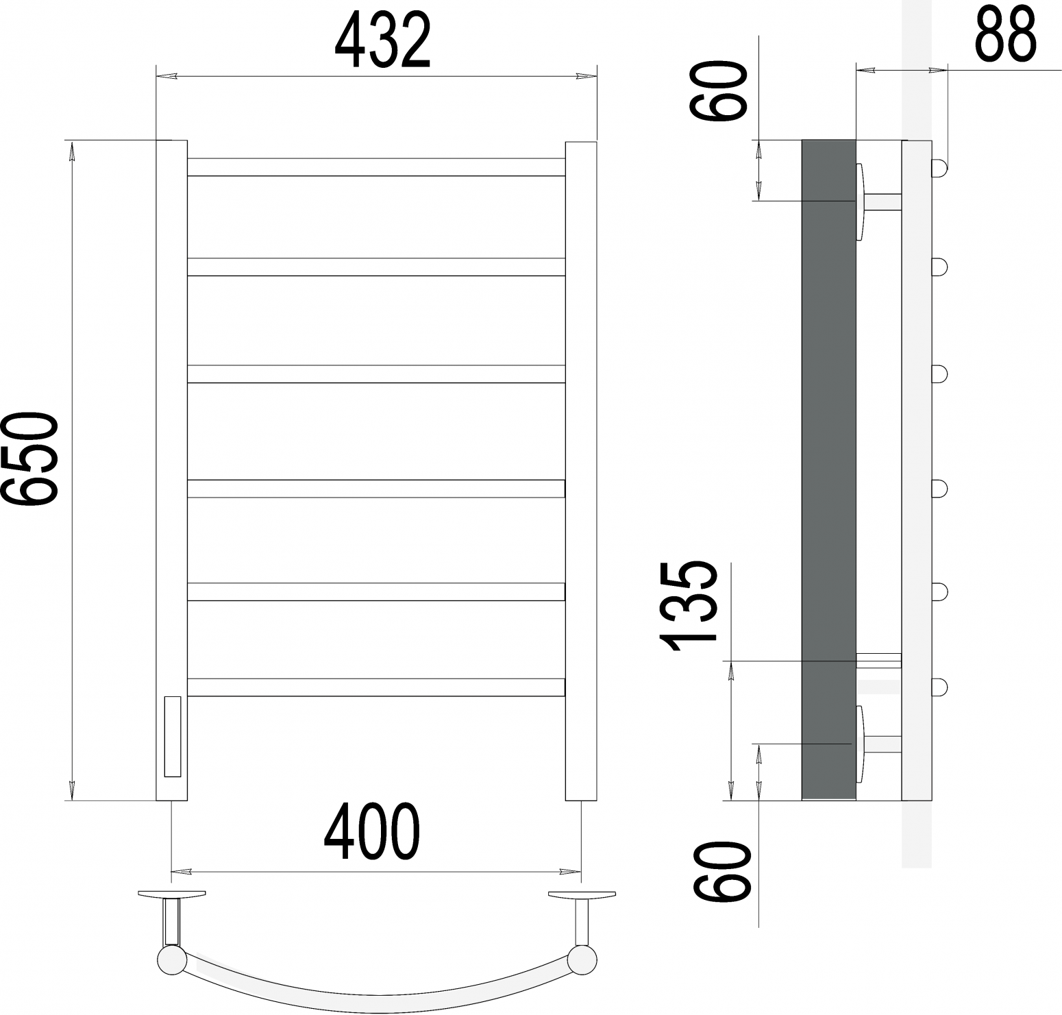 Полотенцесушитель TERMINUS Классик П6 (ШВ:450х600) электро, КС 9005 матовый, диммер встроен, правый
