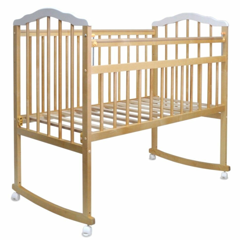 СохранитьКроватка Malika «Melisa-2 LUX» колесо-качалка без ящика Натуральный лак-белый интересное: