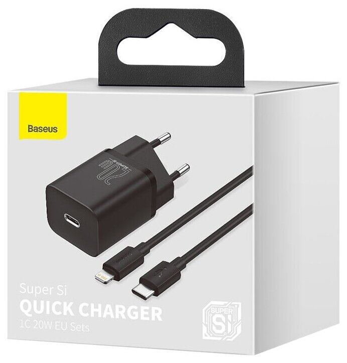 Сетевое зарядное устройство Baseus Super Si + кабель Type-C - Lightning, 20 Вт, черный