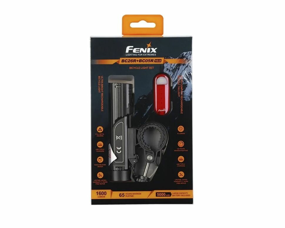 Набор Велофар Fenix Передняя велофара BC26R и задняя велофара BC05R V2.0 Комплект велосипедный
